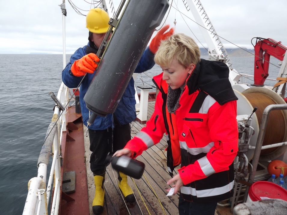 ![]() Fot. 5 Ania Kubiszyn – takes water samples for microplankton analyses |